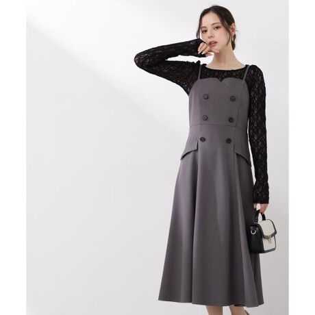 上品なシルエットのトレンチジャンスカ。裾へ向かって広がるフレアシルエットで体のラインを拾いにくく、安心して着用いただけます。肩紐は長さ調節でき、インナー次第で長く活躍してくれます。