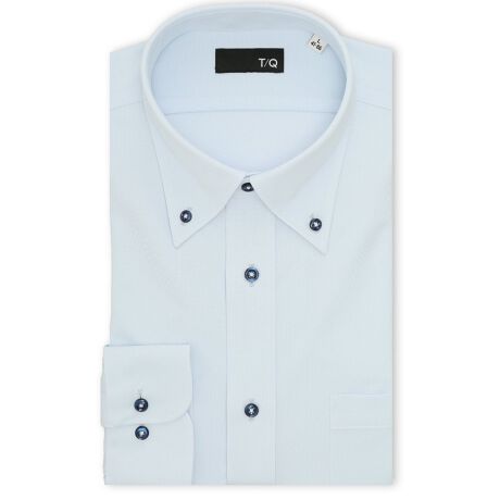 表面感のあるドビーの織り柄(無地)です。衿型はアンタイド(ノーネクタイ)でも衿立ちよく収まり、オフィスカジュアルにもぴったりなボタンダウンを採用しています。タイドアップには、結び目が小さくすっきりとした印象のプレーンノットが好相性です。