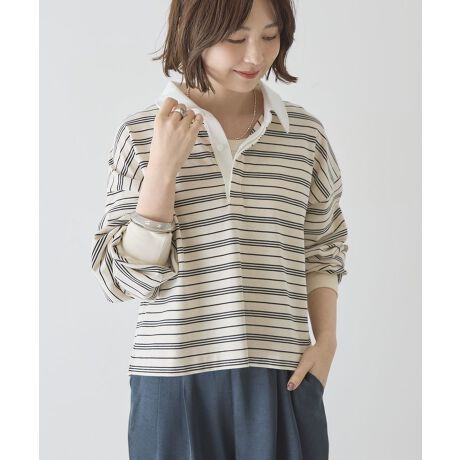 抜け感ときちんと感を両立するラフトップススポーティーな印象の中に、大人らしい落ち着きを感じられる一枚です。アソートデザインが程よいアクセントになり、着るだけでコーディネートに表情が生まれます。ラガーシャツ特有の襟元が顔周りをすっきり見せ、カジュアルながらも上品な印象を与えます。ゆとりのあるシルエットは動きやすく、長時間の着用でも快適です。デイリー使いはもちろん、ワンマイルウェアとしても重宝します。シンプルなアイテムと合わせやすく、着回し力が高いのも魅力です。大人カジュアルやスポーツMIXスタイルを楽しみたい方におすすめで、毎日のコーディネートに自然と馴染む一着です。透け感[なし]