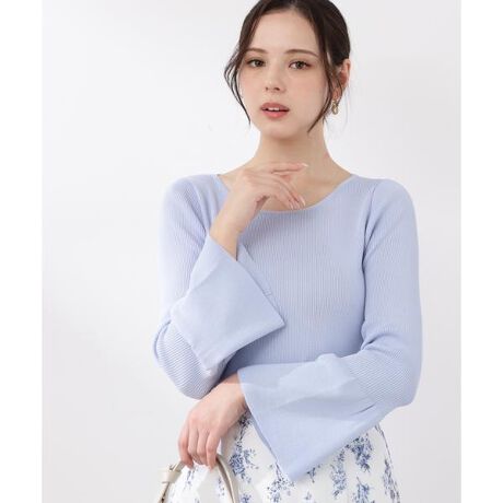 フレアスリーブが上品な印象のニットトップス。袖口に向かって広がるシルエットが女性らしく、手元をキレイに見せてくれます。袖口にポイントを作り、全体はシンプルで着回ししやすいデザインに。清涼感のある素材を軽めの肉感で編んでおり、春先まで長く活躍してくれます。