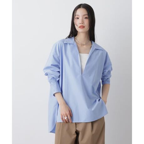 抜け感ときちんと感を併せ持つ、大人の女性にぴったりなプルオーバーシャツ。シンプルなデザインながら、1枚でしっかりとスタイリングが決まる存在感。オンオフ問わず、ボトム次第で幅広いスタイリングに対応するアイテムです。
