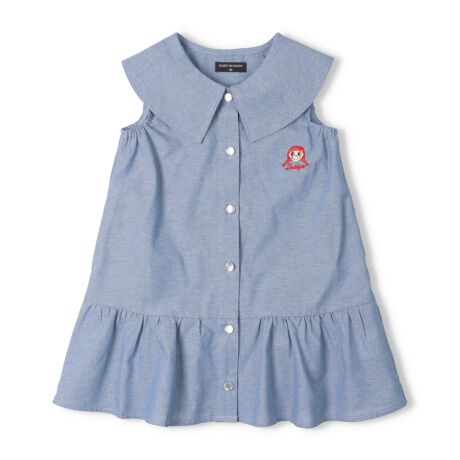 薄手のダンガリー素材の前開きワンピース。大きな衿とダディコちゃんの刺繍がポイント!かなり薄手の素材なので、春は長袖をインナーにして、夏は1枚で。長く着られるアイテム。【アイテム】トップス シンプル ガーリー フェミニン カジュアル お洒落 オシャレ かわいい 可愛い 普段着 デイリーウェア お出かけ着 お外着 お外遊び着 子ども こども 女児 女の子 ガールズ キッズ ベビーサイズ トドラーサイズ 幼稚園 保育園 小学校 通園 通学 小学生 2026年春夏物新作 丸高衣料 ブルー 青色 ダディオダディ コットン100% 綿100%