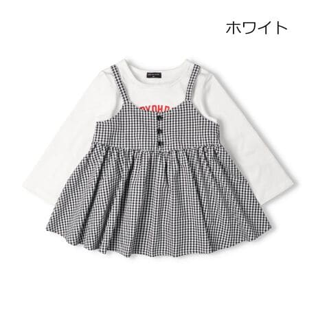 ダディコのプリントの長袖Tシャツ、ロンTとキャミソールの2枚セット。ロンTだけでも、キャミを他のTシャツと合わせても!別々にも2枚合わせても着られる!着回しも色々出来るアイテム。【アイテム】トップス シンプル ガーリー フェミニン カジュアル お洒落 オシャレ かわいい 可愛い 普段着 デイリーウェア お出かけ着 お外着 お外遊び着 子ども こども 女児 女の子 ガールズ キッズ ベビーサイズ トドラーサイズ 幼稚園 保育園 小学校 通園 通学 小学生 2026年春夏物新作 丸高衣料 ロングスリーブ 長袖 ホワイト 白色 ギンガムチェック ピンク ダディオダディ