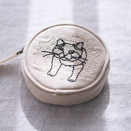 ワイヤーアート作家「+HAyU」の世界観を刺繍で表現した、丸型のミニサークルポーチ。