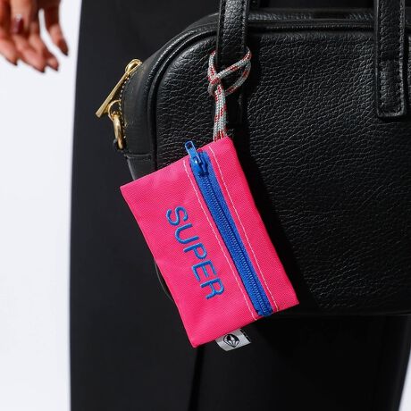 トートバッグのハンドル等への取り付けが可能な長めのロープと可愛らしい刺繍が特徴的なチャーム型のポーチです。