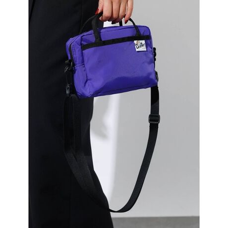 内部の前面側には貴重品や携帯電話の収納に便利なオープンポケット、天面は公共交通機関等でも安心の防犯面に配慮したファスナー式開閉、またハンドルが付属しているので手持ちスタイルも可能です。