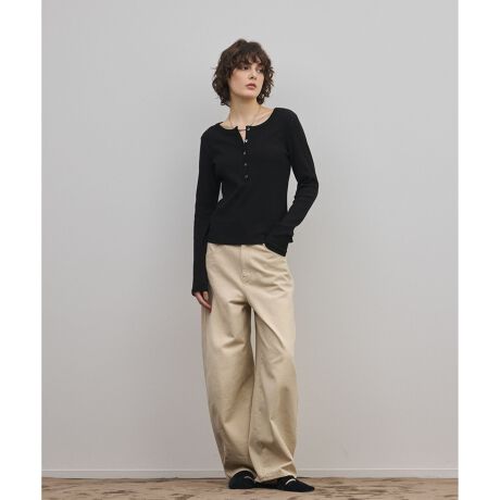 [型番:0326142362]肌ざわりのよいテレコ素材。ヘンリーネックのカットトップスとなっております。※こちらのモデル着用画像はサンプル品を撮影しております。実際の商品と仕様、加工、サイズが若干異なる場合がございます。予めご了承くださいませ。