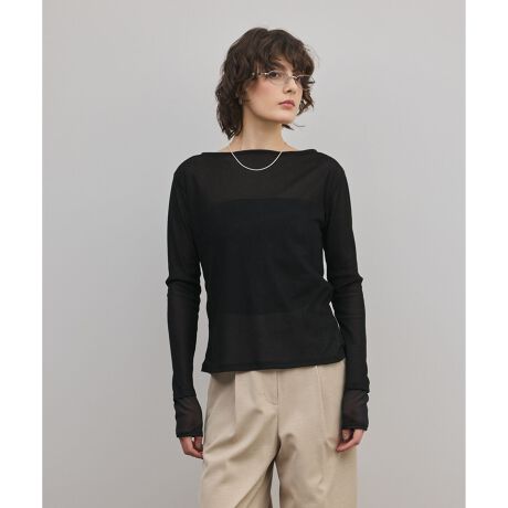[型番:0326142351]起毛感のあるチュール素材を使用したカットソーインナー。袖口にトリコットシフォンのレイヤードディテール。※こちらのモデル着用画像はサンプル品を撮影しております。実際の商品と仕様、加工、サイズが若干異なる場合がございます。予めご了承くださいませ。