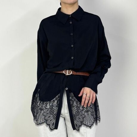 落ち感のある生地と繊細なレースがドレッシーなロングシャツ。