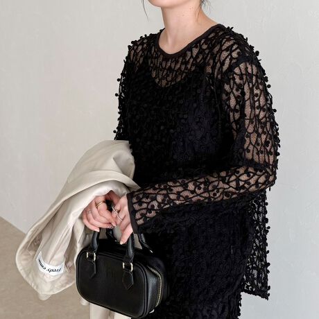 ・全体に散りばめた立体的なドット刺しゅうが目を惹くプルオーバー