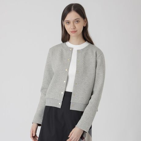 [型番:55P03716__]◆シーズンレスに活用いただけるカットソーカーディガン【Design】カジュアル過ぎない綺麗めなダンボール素材を使用したカットソーカーディガンです。ブルーレーベルらしいゴールドのドットボタンと、袖口を折り返すと覗くクレストブリッジチェックがポイントです。お手入れもしやすく、季節を問わず着用していただける一枚持っていると便利なアイテムです。