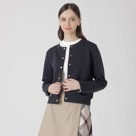 [型番:55P03716__]◆シーズンレスに活用いただけるカットソーカーディガン【Design】カジュアル過ぎない綺麗めなダンボール素材を使用したカットソーカーディガンです。ブルーレーベルらしいゴールドのドットボタンと、袖口を折り返すと覗くクレストブリッジチェックがポイントです。お手入れもしやすく、季節を問わず着用していただける一枚持っていると便利なアイテムです。