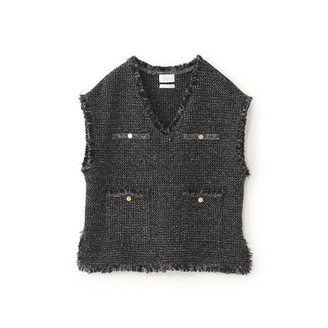 異素材ミックスが生み出すツイード調の表情で、レイヤードを品よく華やかにするニットベスト