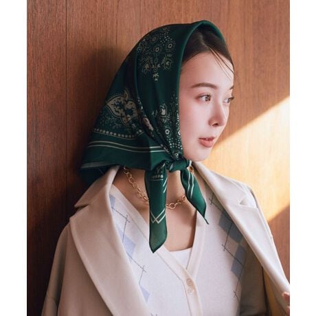 首元から装いが華やぐ大人のための一枚やわらかな色合いに繊細なボタニカル柄をあしらった、上品さと可愛らしさを兼ね備えたデザインです。70×70の程よいサイズ感で、首元に巻くだけで顔まわりを明るく見せてくれます。バッグに結んだり、ヘアアレンジに取り入れたりとマルチWAYで使えるため、いつものコーデに変化をつけたい時にも便利です。さらりとした素材感で肌なじみがよく、季節を問わず取り入れやすいのも魅力です。シンプルなトップスやワンピースに合わせるだけで、さりげないアクセントになり、大人可愛い印象を演出できます。オンオフ問わず活躍し、コーディネートの幅を広げてくれる心強いアイテムです。※モデル着用画像は、光の当たり具合で色味が違って見える場合がございます。※お使いのモニター環境によって商品の色味が違って見える場合がございます。