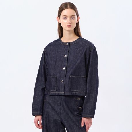 <人気のノーカラージャケットがデニム素材で登場>