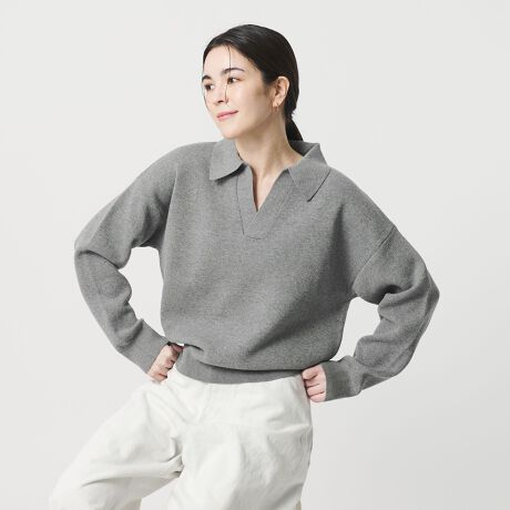 顔まわりをすっきりと見せてくれる、抜け感のあるスキッパーネックデザイン。