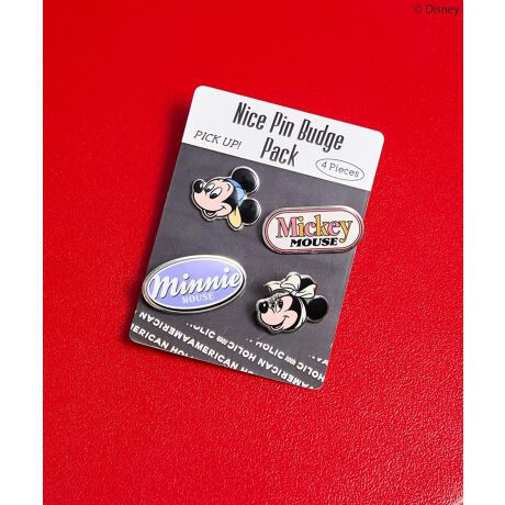 「ミッキーマウス」×「ミニーマウス」、「ドナルドダック」×「デイジーダック」のそれぞれ異なるデザインの4種のモチーフが入ったアソートピンズセット。その日の気分やスタイリングに合わせて、キャップやトートバッグ、Gジャンなどにつけるだけでレトロポップな印象になります。