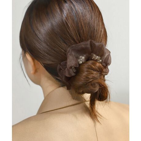 オーガンジー生地の中から透けて見えるパールが、うしろ姿に華やぎを与えるシュシュ。落ち着きのあるカラーがどんな髪色にも馴染み、上品で大人っぽい雰囲気を演出します。※ATTENTION※■微細なキズや製造ムラはすべての商品に含まれます。[型番:DG640095H]