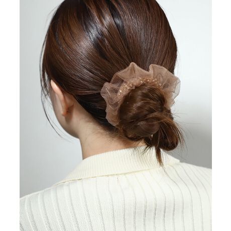 チュール生地の中から透けて見えるビーズが、うしろ姿に華やぎを与えるシュシュ。落ち着きのあるカラーが髪色に馴染みやすく、デイリーに活躍します。※ATTENTION※■微細なキズや製造ムラはすべての商品に含まれます。[型番:DG640097H]