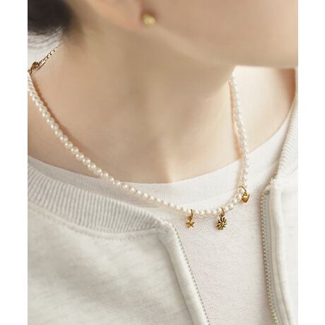 柔らかく艶めくパールが、デコルテに華やぎを与えるネックレス。