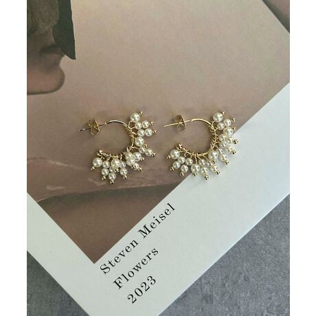 程よいサイズ感のフープに、小粒パールをランダムに連ね、動くたびに繊細な輝きをプラスします。