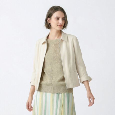 [型番:72263130501]ジップ開閉式の適度にカジュアルな表情が今らしいジャケット。ボトムを選ばない着丈とスマートなデザインで、幅広いスタイリングを楽しめます。さらりとした質感も心地良い一枚。※商品画像はサンプルを使用しているため、実際の商品と色味などの仕様が異なる場合がございます。予めご了承ください。model:T.167着用サイズ:38