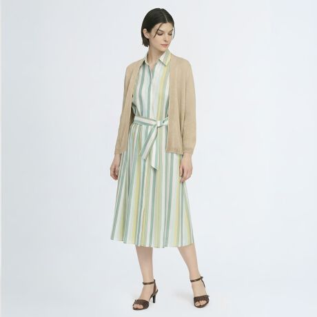 [型番:72263110521]ドレッシーでいて爽やかなマルチストライプ柄ワンピース。甘くなりすぎない比翼シャツ仕立てで、オンオフ問わずさらりと着こなせます。ウエストベルトでアレンジを楽しめるのもポイント。※商品画像はサンプルを使用しているため、実際の商品と色味などの仕様が異なる場合がございます。予めご了承ください。model:T.167着用サイズ:38