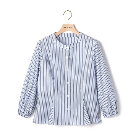 [型番:72263270531]シンプルなワンツースタイルも着映えするストライプ柄ブラウス。バンドカラーやふんわりしたスリーブが、モードな表情をひとさじプラス。端整さを保ちつつ、リラックス感のある着こなしが叶うのも魅力です。※商品画像はサンプルを使用しているため、実際の商品と色味などの仕様が異なる場合がございます。予めご了承ください。