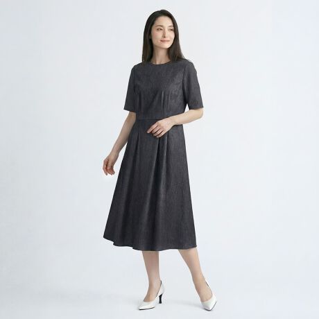 [型番:72263110501]さらりとした肌ざわりが心地良いワンピース。ウエスト切り替えから広がるフレアラインで、即座に美シルエットが叶います。ストレッチ入りで肩が凝らない着心地なのも魅力的。※商品画像はサンプルを使用しているため、実際の商品と色味などの仕様が異なる場合がございます。予めご了承ください。(ネイビー)model:T.165着用サイズ:38(ベージュ)model:T.167着用サイズ:38