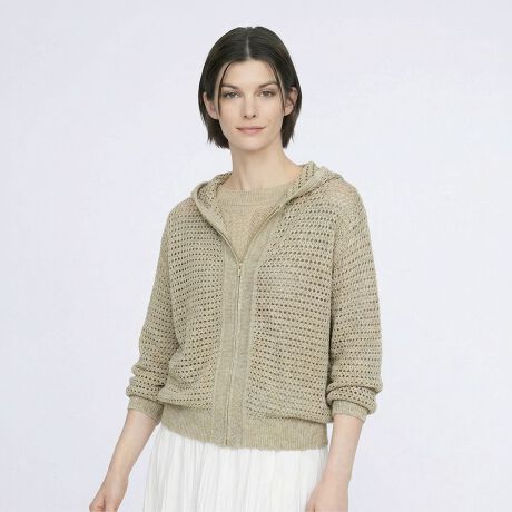 [型番:72263180541]軽やかに着られる透かし編みニット素材のパーカ。シンプルなTシャツの上に羽織るだけでも、今らしくフェミニンなレイヤードスタイルを演出できます。季節の変わり目や冷房対策にも着丈する一着。※商品画像はサンプルを使用しているため、実際の商品と色味などの仕様が異なる場合がございます。予めご了承ください。model:T.167着用サイズ:38