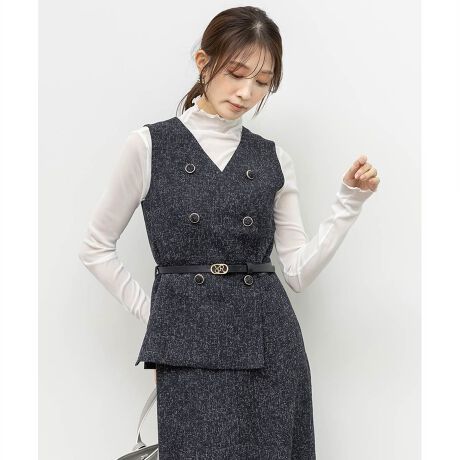 ・ノーカラージャケットとマーメイドスカートを合わせたドッキングデザイン
