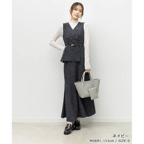 ・ノーカラージャケットとマーメイドスカートを合わせたドッキングデザイン