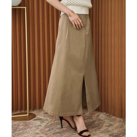 【2026SS】綿混 センタースリット Aラインスカート ロング
