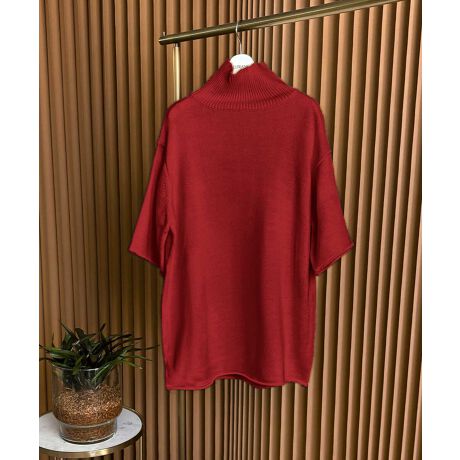 【2026SS】タートルネックハーフスリーブウールニットトップス/ゆったりシルエット