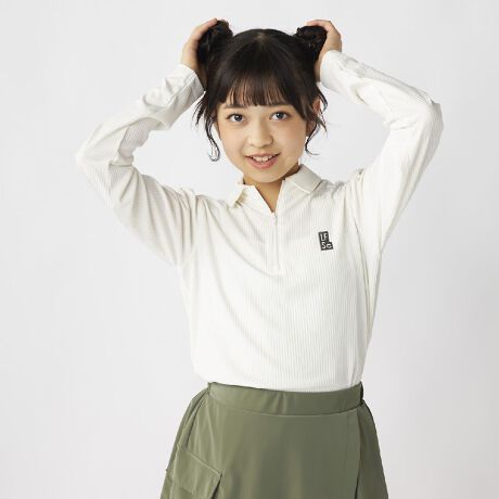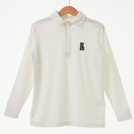 [型番:145403]【LOWRYS FARM SCHOOL/ローリーズファームスクール】ハーフジップを襟付きのデザインに落とし込んだ旬な1枚。 細めのリブ素材を使用しているので、ブラックでも重たくならず、すっきりとした縦ラインでスタイルアップ効果も抜群です。 胸元の「LFSC」ロゴが、シンプルな中にもスクールライクな可愛さをプラス。 ジップを閉めてカッチリ着ても、開けて抜け感を出しても決まる、着回し力の高いアイテムです!