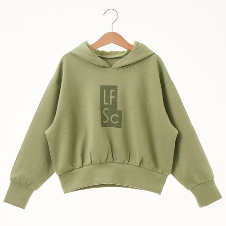 【LOWRYS FARM SCHOOL/ローリーズファームスクール】カジュアルの定番パーカーを、ハリのあるポンチ素材でスタイリッシュにアップデート。 フロントには「LFSC」のビッグロゴを同系色でプリントし、立体感のあるクールな表情に仕上げました。 スウェットよりもクリーンな印象で、ラフになりすぎず「お出かけ仕様」のスタイルが完成。 適度な厚みとハリがあるためフードがしっかりと立ち、顔周りを華奢に見せてくれるのが嬉しいポイント。 シワになりにくく、ひじ部分の伸びも気になりにくいので、きれいなシルエットを長時間キープできます。