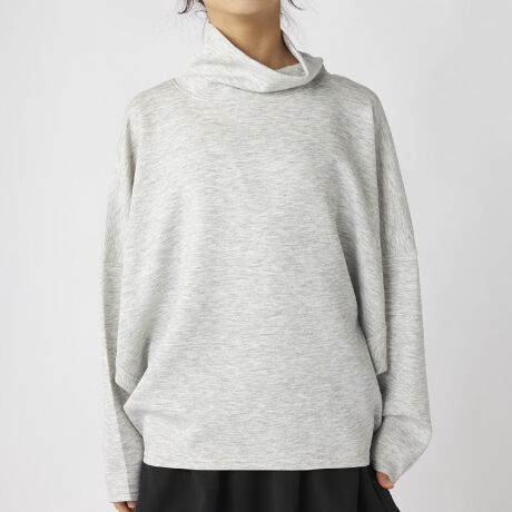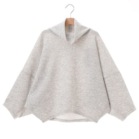 【LOWRYS FARM SCHOOL/ローリーズファームスクール】ドルマンスリーブのオーバーサイズが特徴的なハイネックのトップス。スウェットよりもハリのあるポンチ素材なので、ラフになりすぎず都会的な印象に。 短めの丈感は、ワイドパンツやボリュームのあるスカートとも相性抜群です。背面の切替デザインがアクセントになり、1枚で着ても単調にならないのが嬉しいポイント。 インナーに白Tシャツをレイヤードして、裾からチラ見せするスタイルもおすすめです。