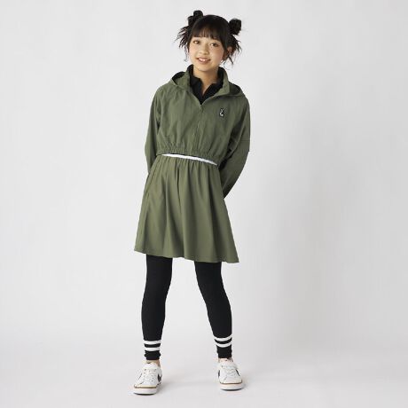[型番:145411]【LOWRYS FARM SCHOOL/ローリーズファームスクール】ナチュラルなシワ感が魅力的なナイロンテックのショートフードジャケット。ウエスト位置を高く見せるショート丈が、スタイルアップを叶えます。 シャカシャカとした軽やかな素材感と、たっぷりとしたボリューム袖のバランスが、今どきのストリートスタイルを完成させ、中からロンTやシャツを覗かせるレイヤードスタイルはもちろん、ハイウエストのボトムスやワンピースとも相性抜群!