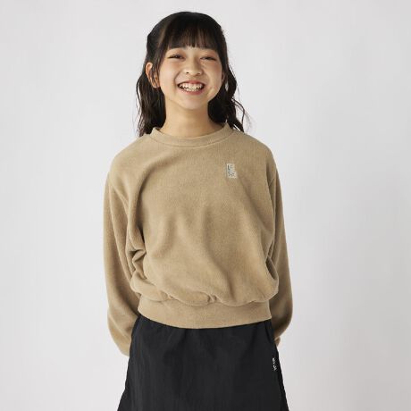 【LOWRYS FARM SCHOOL/ローリーズファームスクール】思わず触れたくなるような、柔らかなフリース素材を使用したプルオーバー。保温性に優れたフリース生地を採用し、寒い季節も快適に過ごせる1枚に仕上げました。 たっぷりとしたボリューム袖と、裾を絞った丸みのあるシルエットが、女の子らしい可愛さを引き立てます。 左胸には「LFSC」ロゴをあしらい、スポーティーなエッセンスをプラス。 ショート丈なので、重たくなりがちな冬のコーデもスッキリとバランス良く着こなせます!