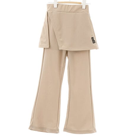 【LOWRYS FARM SCHOOL/ローリーズファームスクール】裾が広がったシルエットのパンツに、ラップスカートがドッキングされた、モードなデザインが特徴の主役級パンツです。 膝から裾にかけて広がるフレアシルエットが脚を長く、細く見せてくれるスタイルアップ効果抜群のデザインです。 シンプルなトップスを合わせるだけで、こなれ感たっぷりの韓国ストリートファッションに。ほど良いハリ感としなやかなドレープ性を持った素材は、シワになりにくいのでお手入れが簡単です!