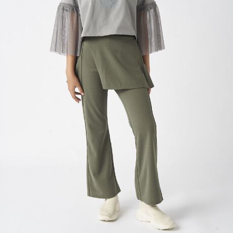 【LOWRYS FARM SCHOOL/ローリーズファームスクール】裾が広がったシルエットのパンツに、ラップスカートがドッキングされた、モードなデザインが特徴の主役級パンツです。 膝から裾にかけて広がるフレアシルエットが脚を長く、細く見せてくれるスタイルアップ効果抜群のデザインです。 シンプルなトップスを合わせるだけで、こなれ感たっぷりの韓国ストリートファッションに。ほど良いハリ感としなやかなドレープ性を持った素材は、シワになりにくいのでお手入れが簡単です!