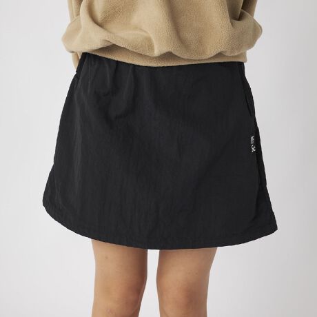 【LOWRYS FARM SCHOOL/ローリーズファームスクール】スポーティーなナイロン素材のフレアスカートです。 広がりを抑えた台形ラインが腰回りをすっきり見せ、脚を細く長く演出してくれます。シンプルなデザインに、左サイドの「LFSC」タグがさりげないアクセントを添えています。 通学から部活動の移動着、休日のお出かけまで、マルチに活躍する頼れる1枚です。ナイロン素材特有のドライな質感なので、1年を通して着用できる着回し力の高いアイテムです。