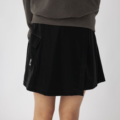 【LOWRYS FARM SCHOOL/ローリーズファームスクール】 トレンドのミニ丈を、安心感のあるキュロット仕様に落とし込んだ1枚。 フロントが重なったラップデザインになっているので、前から見るとスッキリとした台形ミニスカートのような印象を与えてくれます。 サイドのフラップポケットとさりげないロゴ刺繍が、今っぽいワーク&スポーティーなムードを演出。