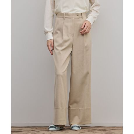 カジュアルにも綺麗にも馴染む程よいワイドなシルエットが、上品な抜け感とニュアンス感を演出します。気味がかったナチュラルムード漂う麻調カラーのベージュと、ほんのり光沢感がありきちんと見えが叶うブラックの2色をご用意。お揃いでお作りしたジャケットを合わせた大人なセットアップスタイルもぜひ。
