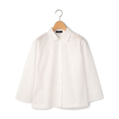 アイテム全体にミモザモチーフの刺繍をあしらったシャツです。きちんと品良く着られる定番の衿付きデザインで、1枚で着るのはもちろんジャケットやカーディガンのインナーとしても存在感を発揮します。ほど良い透け感のあるコットン素材と7分袖で、シーズン問わず長くお使いいただけるアイテムです。