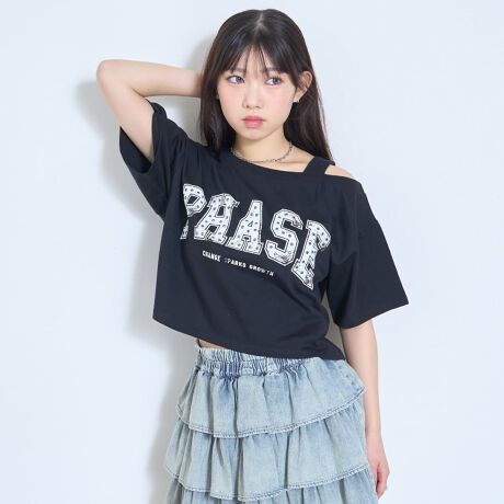 さりげない肌見せが叶うワンショルダーデザインのTシャツです。