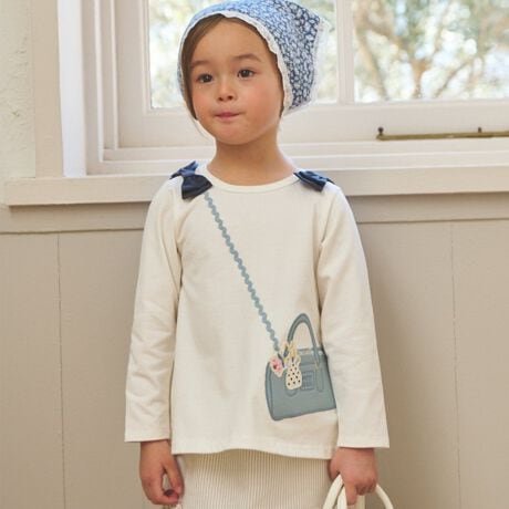 バッグをかけているような、遊び心のあるデザインが魅力の長袖Tシャツです。
