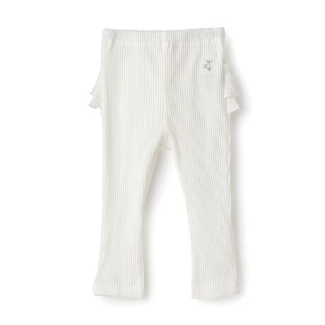 おしり部分に2段のフリルをほどこした9分丈のレギンスです。さりげなく入っているさくらんぼ刺しゅうがかわいいポイント。よく伸びるテレコ素材と総ゴム仕様のウエストで動きやすく、着脱も簡単です。合わせやすいデザインで、どんなコーディネートにも活躍します。内側にお名前を記入できるタグつき。【おすすめの着用時期は春夏シーズン】