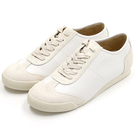 レザーとスエードを組み合わせた上品な素材感が魅力のレースアップスニーカー。