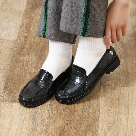 トラディショナルなローファーのデザインを、雨の日でも安心して履けるPVC素材で仕上げました。